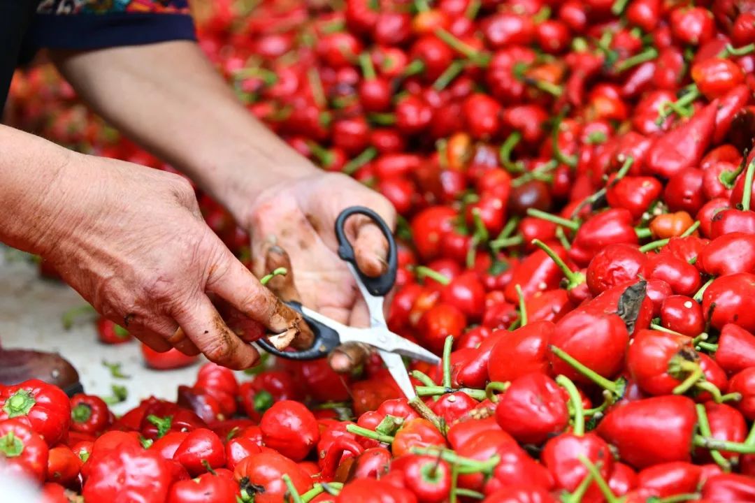 ▲ 虾子镇,大家在采摘和制作鲜辣椒。图/ 视觉中国