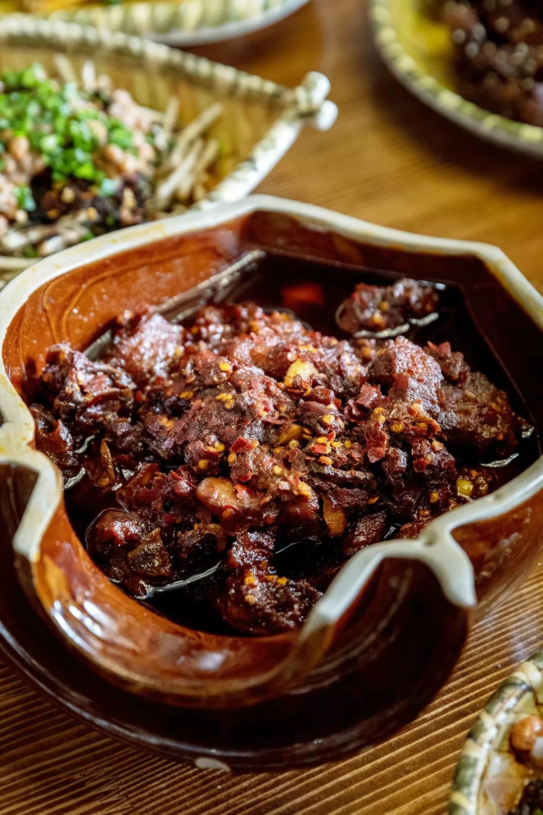 相传这种闻香知味的手段,来自最初的农家制法——把干辣椒直接丢进灶台的柴火堆里,只能凭气味把控什么时候该刨出来。这样捣碎而成的煳辣椒,带有真正的“人间烟火”之气。