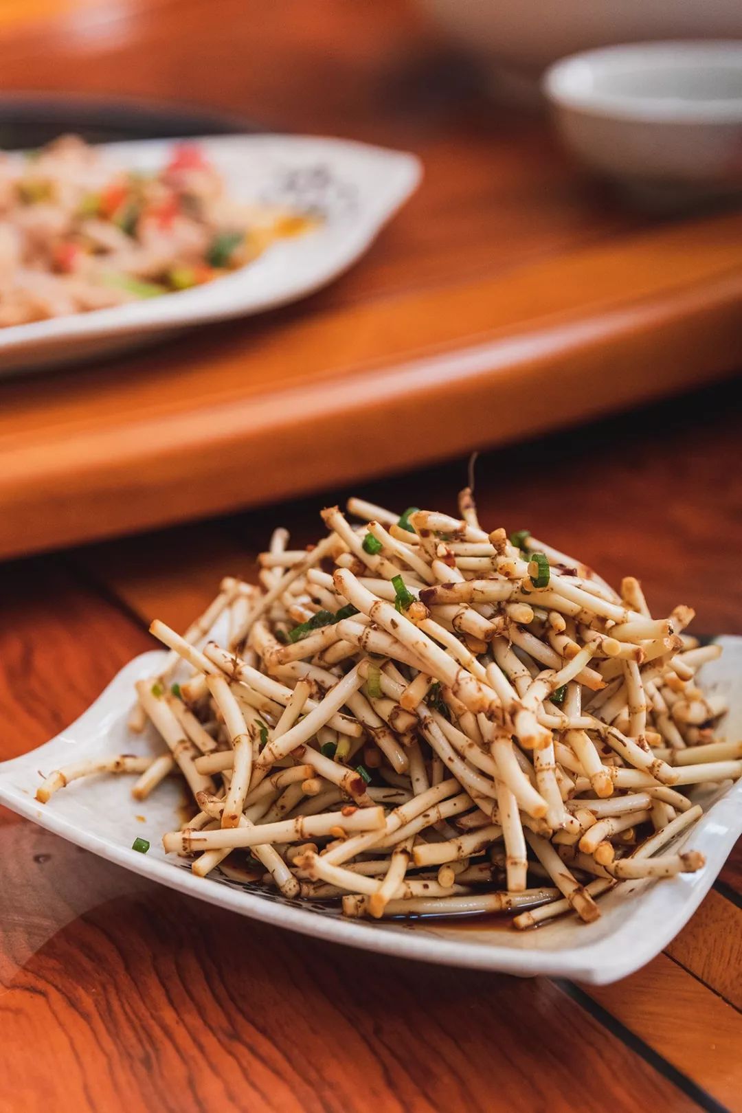 对于折耳根,贵州人更是有着如同初恋般的执念。拌上以煳辣椒为主的佐料,凉拌着就可端上桌;而将煳辣椒面洒在切碎的折耳根上,浇上一勺汤,就成了直击灵魂的折耳根蘸水。尤其在小吃里用的多,豆腐果、洋芋粑、丝娃娃、狼牙土豆、豆腐圆子......全部都离不开这味特立独行的食材,它与辣椒形影不离,构成了魔幻现实主义版的“贵州味道”。