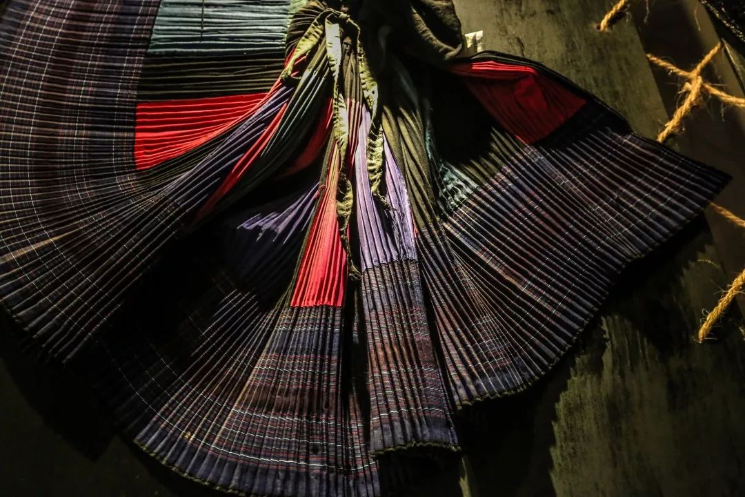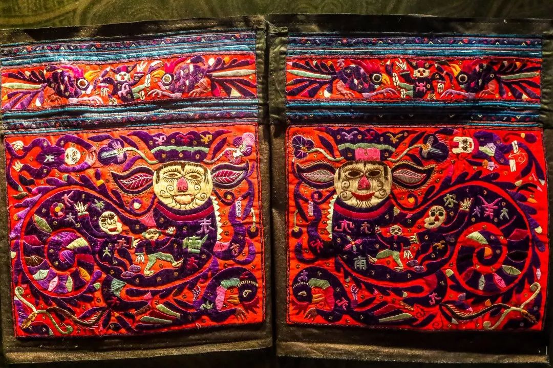 ▲ 图片依次为贵州民族民俗博物馆藏:黄平县数纱绣苗族上衣局部、鸟衔鱼土蜡染布、苗族百褶裙、牯藏衣(2张)、苗族背带局部——蝴蝶妈妈图案、刺绣图案(伏羲女娲)、习水一带的苗裙局部。摄影/ 王寰