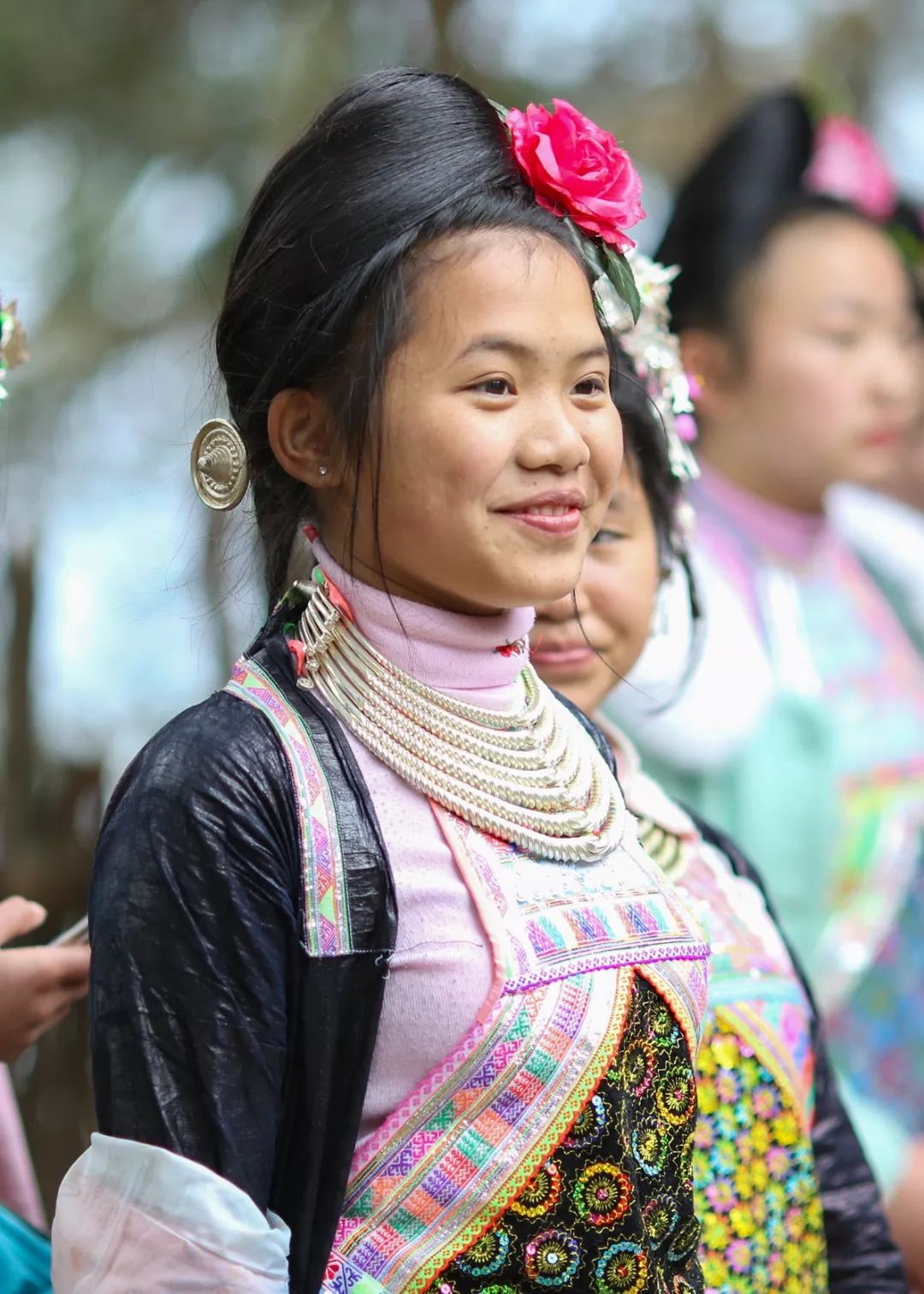 ▲ 戴银饰的苗族少女。摄影/ 卢文