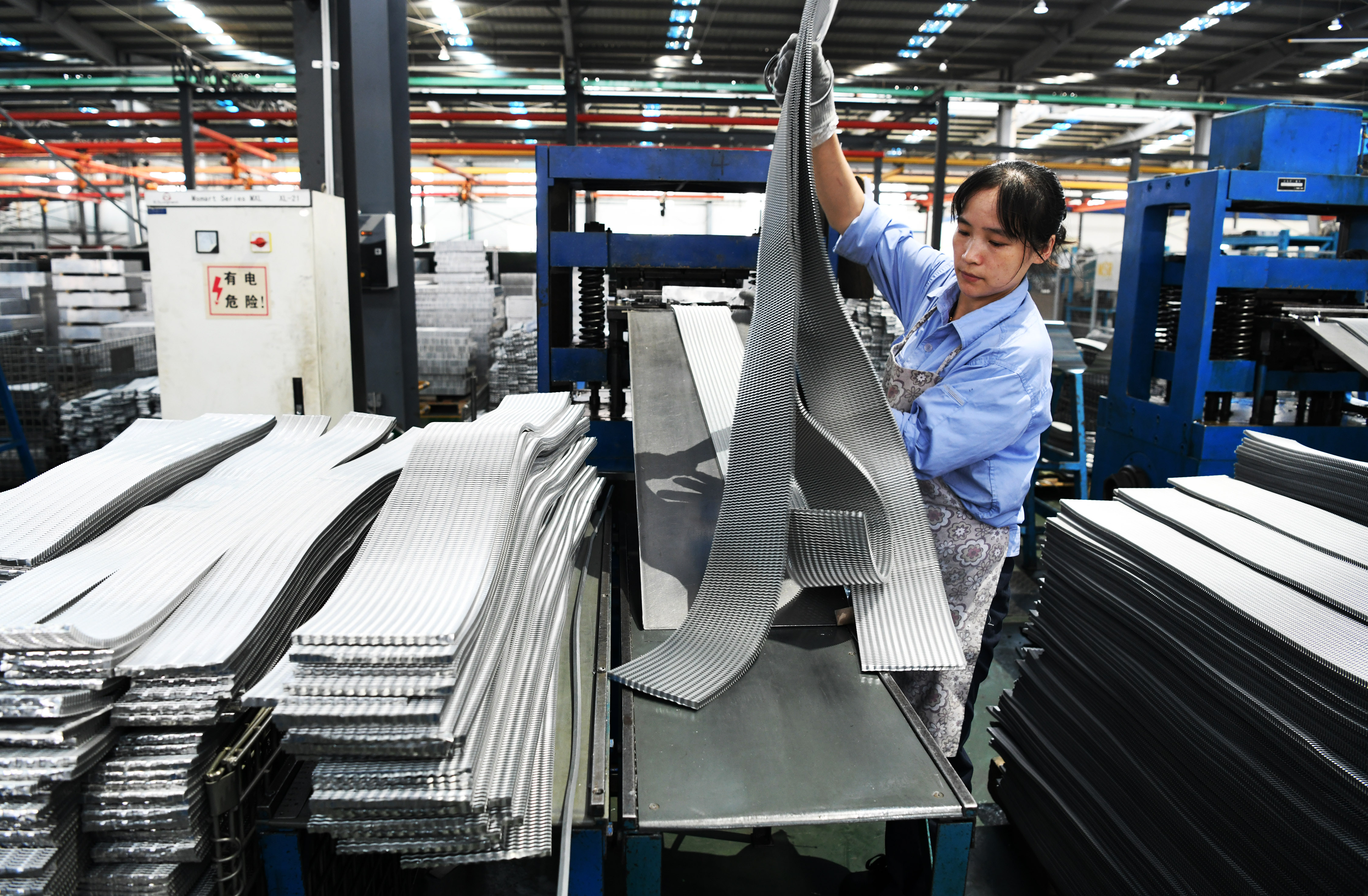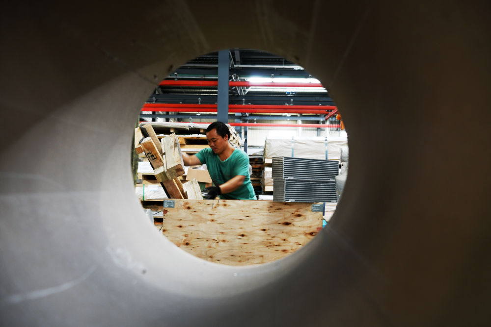 在贵州省惠水县新民社区附近的一家公司,由农民转变为工人的搬迁户在车间里作业(7月23日摄)。新华社记者 杨文斌 摄