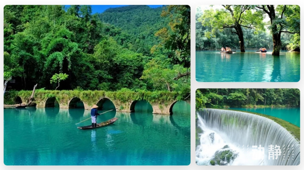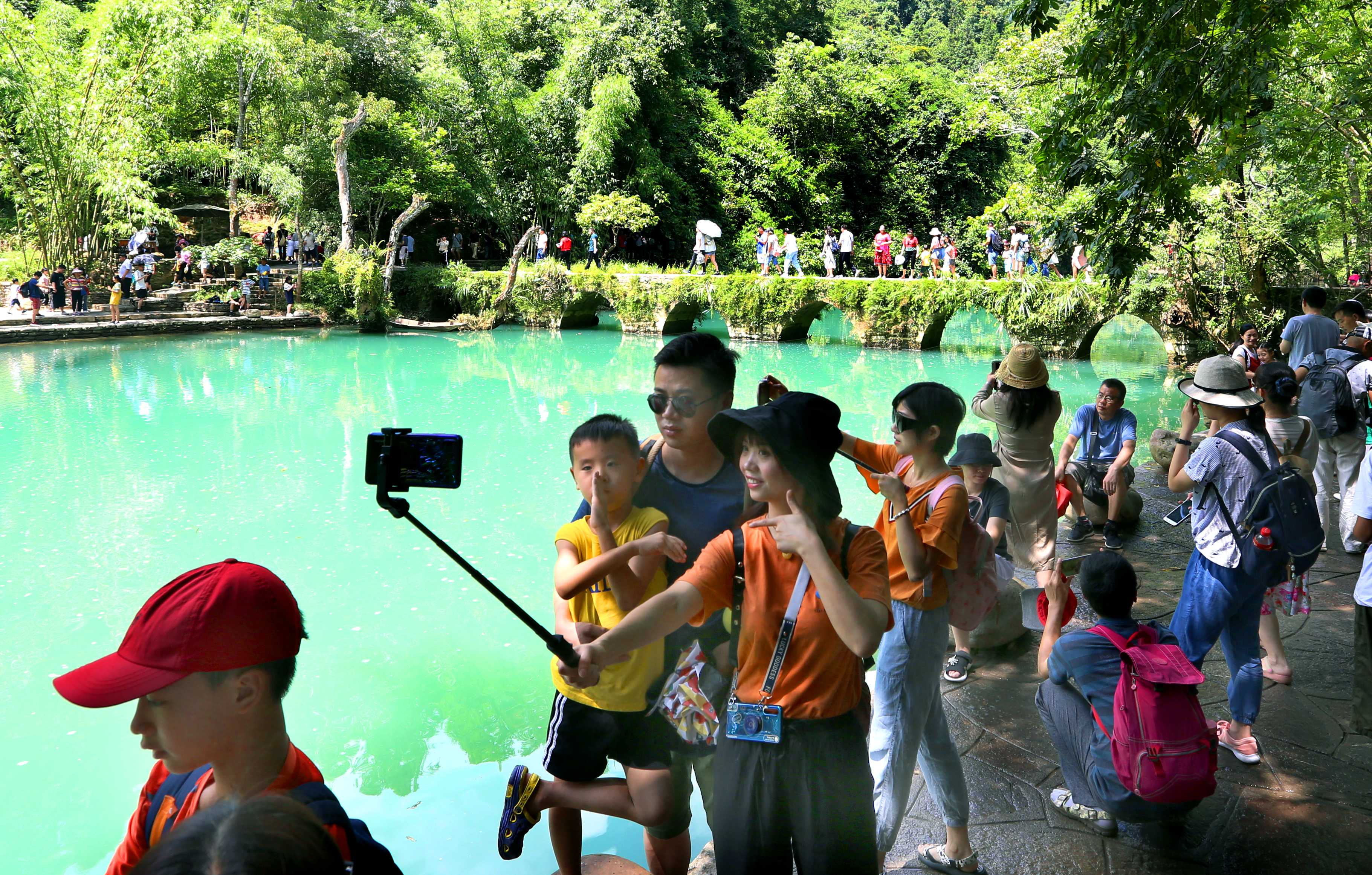 第六天,来到被联合国教科文组织誉为“地球上同纬度的最后一颗绿宝石”的荔波小七孔景区。景区因一座建造于道光15年间(1836年)的小七孔石桥而得名,被称之为“超级盆景”,集山、水、洞、林、湖、瀑布等为一体,在长不到2公里的峡谷内,起迭着68级瀑布;拉雅瀑布精巧醉人、水珠飞溅;而长不到600米的水上森林,树根盘在错石上,清澈的水流冲刷着青石。行走于其中,仿若身临琼瑶仙池。