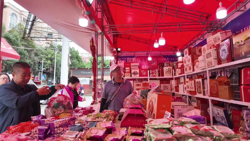 市民 娄宏:现在节假日,那我们就是来选点(月饼),然后现在市场这边产品很丰富,选择面很多。今天就是来购买一些过节。