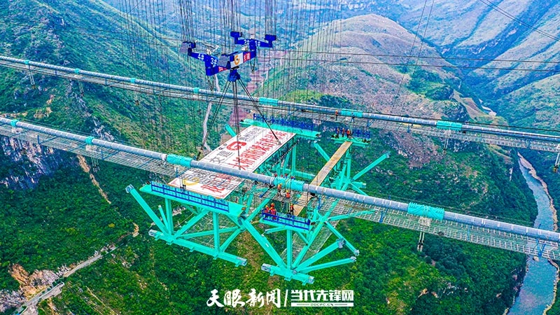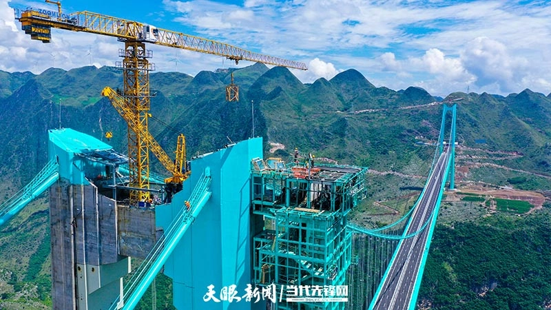 2022年12月31日,首座“纯贵州造”悬索桥——纳晴高速牂牁江大桥主塔封顶。