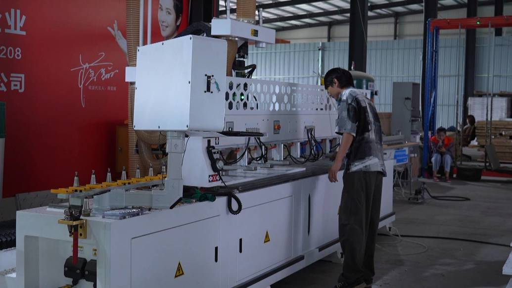 米迪马全屋定制(贵州)有限责任公司负责人 江远川:一张板件,一家人、一个客户的话,基本上大概在40个方(平方米)左右,一个户型那40个方(平方米)的话大概可能就需要两个小时就可以把它全部完成掉了。现在我们(公司)加工的主要有颗粒板、生态板、多层板,还有欧松板几个材质的产品。