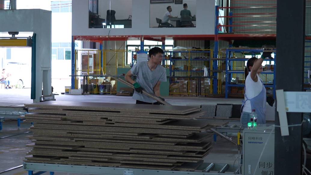 米迪马全屋定制(贵州)有限责任公司员工 黄运全:我的工作内容就是负责开料,然后把那个原材料放在那个机台上。然后开出来,整理出来,送到下一道工序。工作时长8个小时,工资平均一个月四五千左右。因为这里工作也比较方便,离家也比较近。