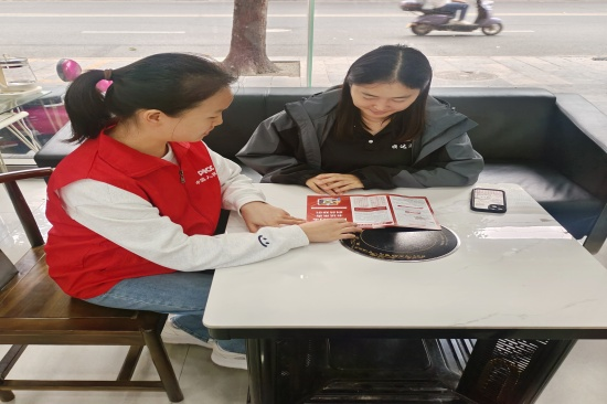 为助力营造安全稳定的营商环境,该公司还组织人员走进普定县商圈,开展“金融知识进商铺”活动。通过逐户上门的方式,工作人员围绕商户关心的保险保障、识别非法集资与防范电信诈骗等内容进行重点讲解,有效提升了商户群体的风险辨识与抵御能力。
