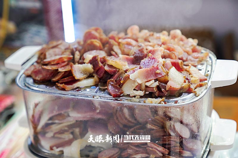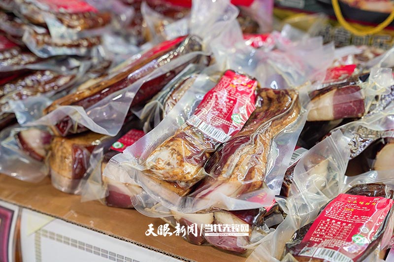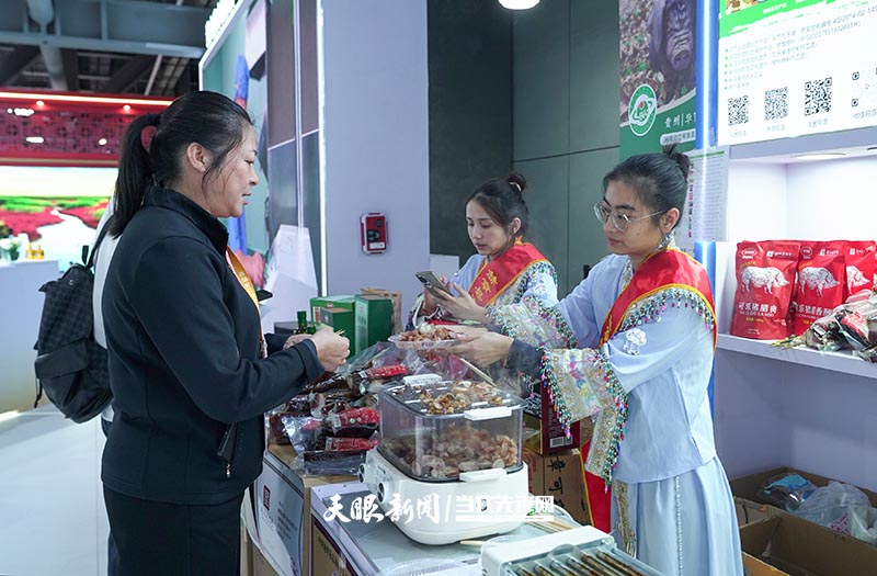 展馆以“黔韵承经典·进博焕新彩”为主题,集中展示食品加工、茶叶等五大品类。中华老字号但家香酥鸭脆香可口,排队游客络绎不绝;地标产品可乐猪腊肉经核桃渣烘烤,肥而不腻,火爆出圈;都匀毛尖、雷山银球茶等贵州名茶也同步亮相,尽显黔味特色。
