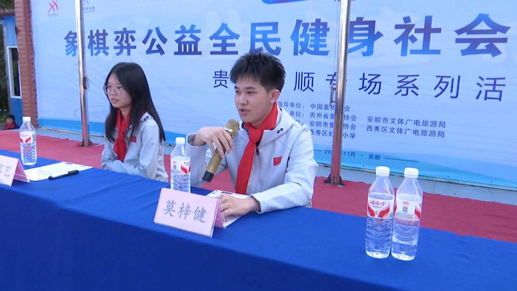 贵州省象棋协会副主席、秘书长 许懿:今年在国家体育总局棋牌运动管理中心和中国象协会的支持下,我们在贵州举行了多场的象棋公益的全民健身志愿服务活动。今天来到了我们安顺市开启了安顺专场的第一场活动。整个象棋公益的志愿服务活动主要的任务就是传承我们象棋文化,特别是在青少年群体当中传承我们象棋文化。我们今年在贵州省的所有专场活动中我们特别重视的就是在学校里面开展活动。我们今年分别邀请了大师、特级大师8人次到贵州,到我们的学校来参加类似的活动。希望在他们的激励下面,我们的更多的同学去参与象棋活动,去喜爱象棋,去下象棋,为我们以后这个项目的发展注入新鲜的动力和血液。