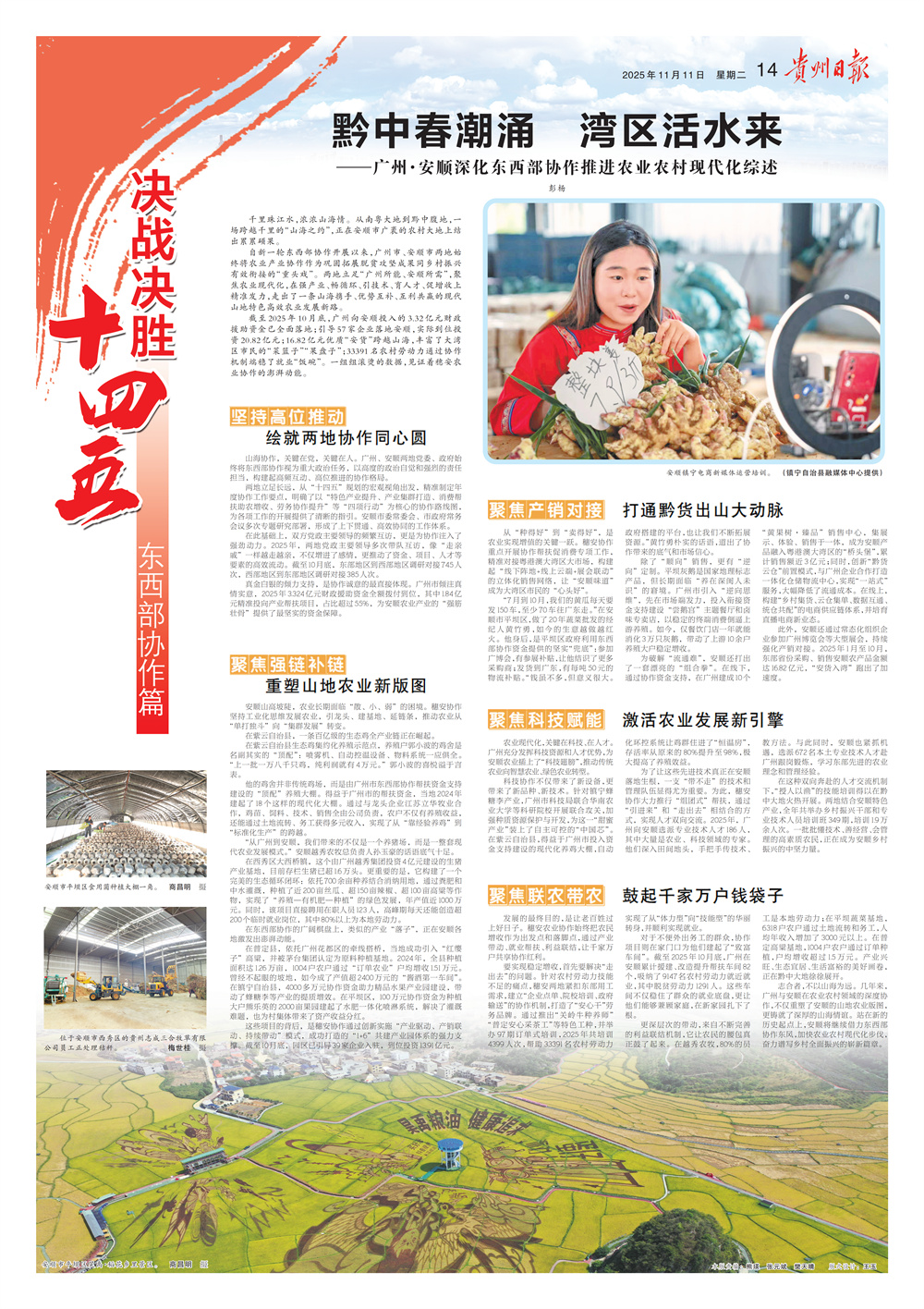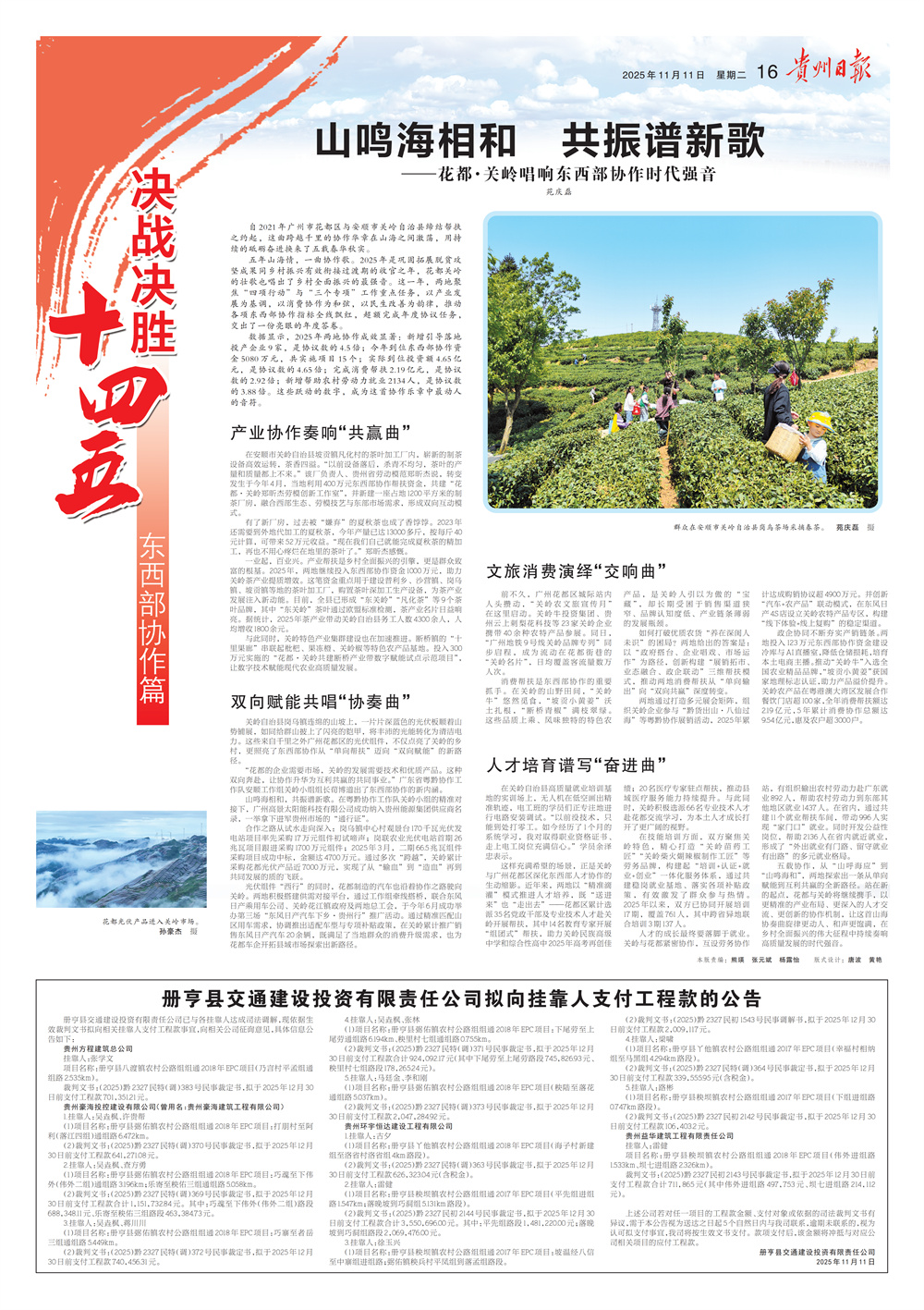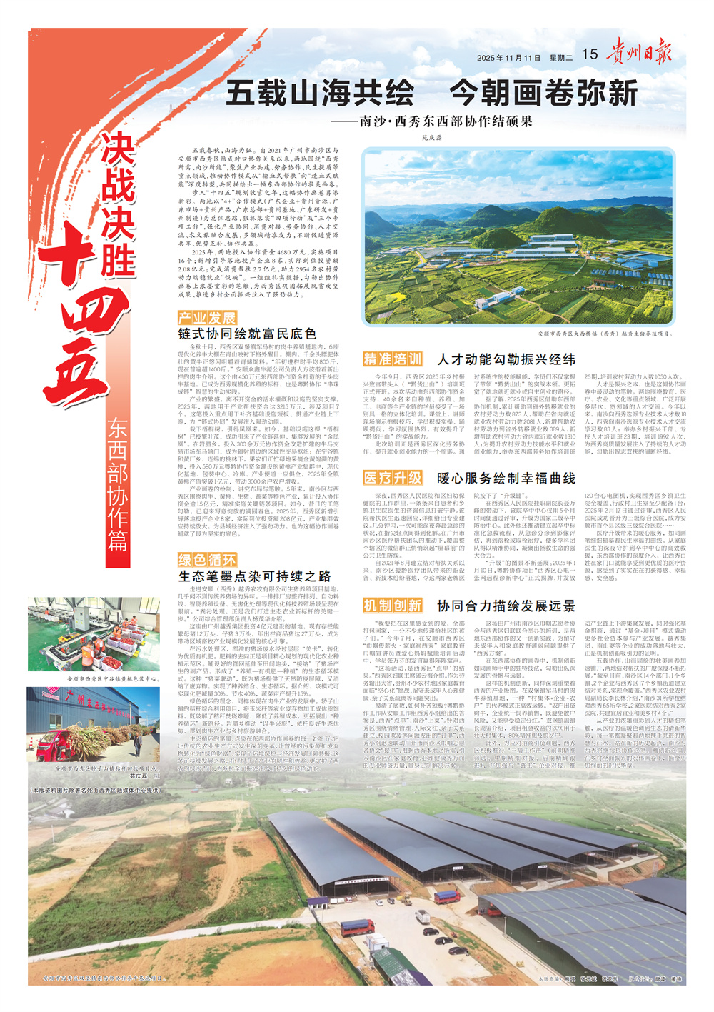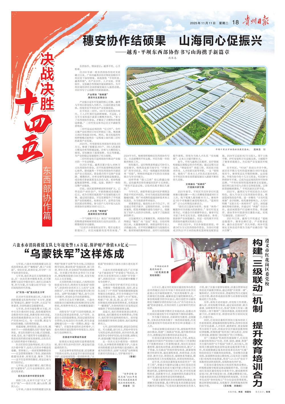 今年是“十四五”规划收官之年,《贵州日报》今日推出特别报道——《决战决胜十四五东西部协作篇》。东西部协作开展以来,贵州各地产业发展、人才培育、民生改善等方面发生翻天覆地的变化,共同描绘出一幅东西部协作的壮美画卷。