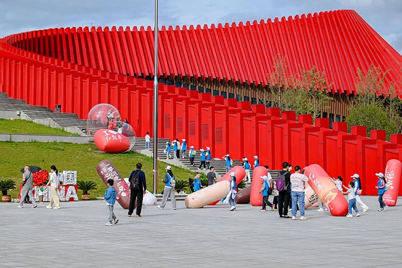 游客在贵州长征文化数字艺术馆(红飘带)参观。贵州日报天眼新闻记者 刘青 摄