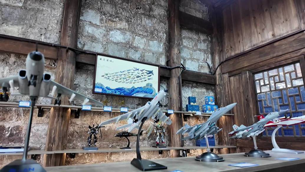大众热销文创之外,差异化特色品类也备受市场关注。在古城内就有一家与中航合作的主题门店落地,推出多款对应题材产品,精准锁定爱好者群体,形成专属消费热潮。