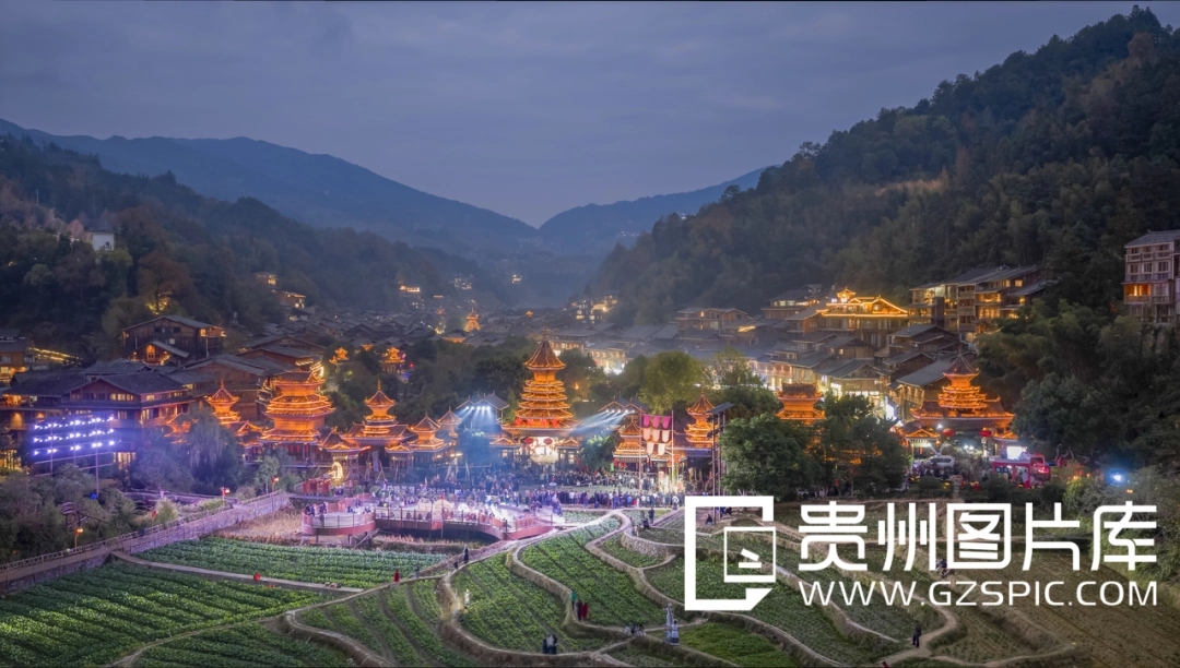 黎平县肇兴镇肇兴侗寨华灯璀璨。(李必祥 摄)