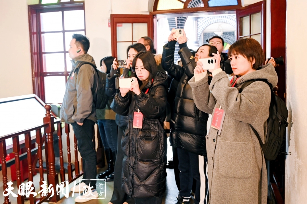 记者们参观遵义会议会址。(贵州日报天眼新闻记者 刘杨 杨涛 摄)