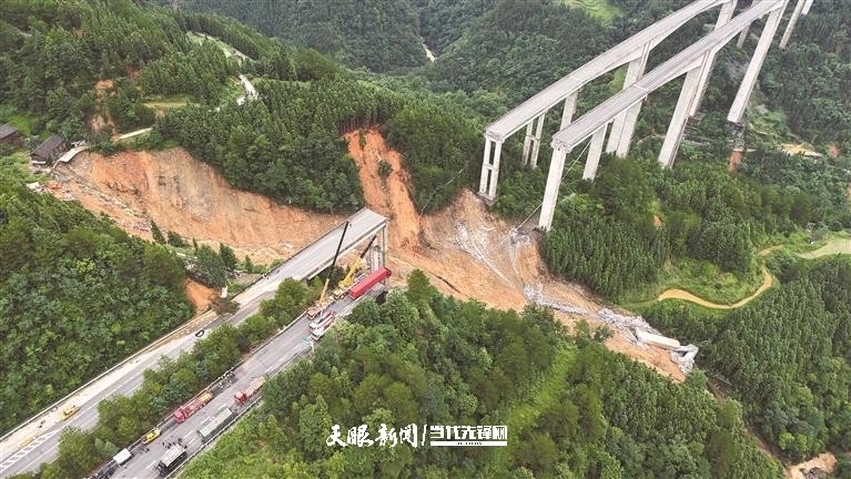 厦蓉高速猴子河特大桥引桥垮塌现场。 (贵州日报天眼新闻记者 廖文祥 王华 摄)