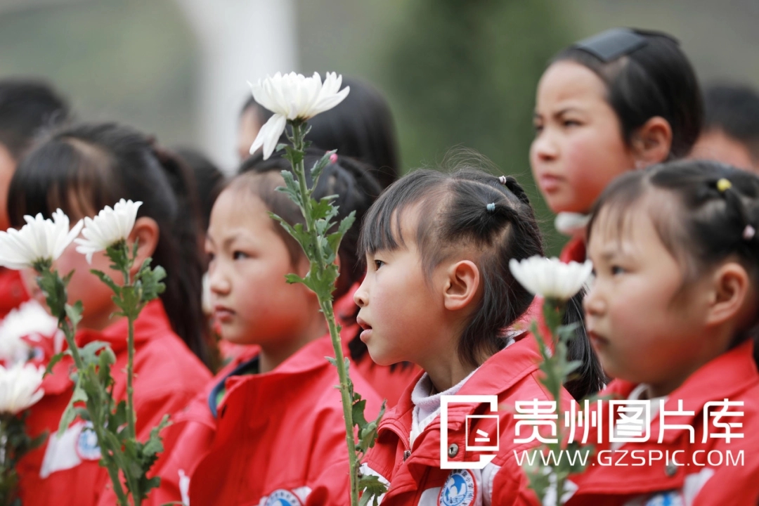 黔西市林泉镇林泉小学的学生在聆听英烈事迹。(侯进勇 摄)