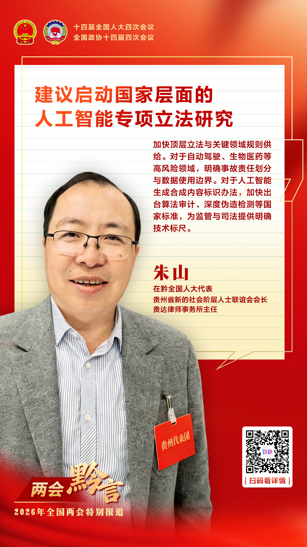两会黔言丨在黔全国人大代表朱山:建议启动国家层面的人工智能专项立法研究