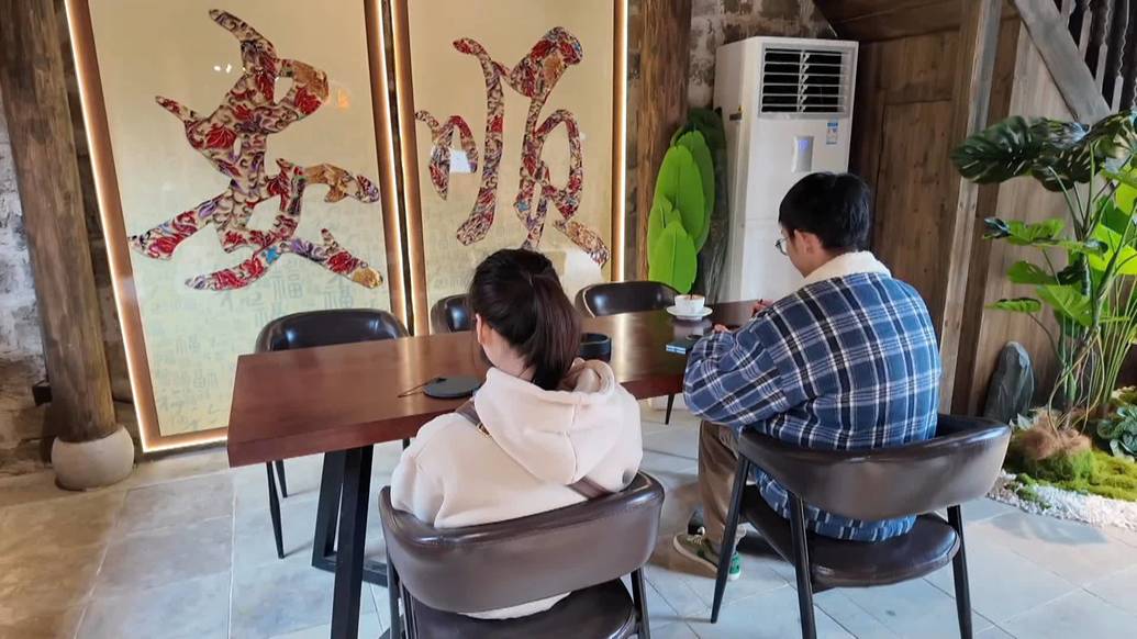 河南游客 谢奇轩:这是我第一次来到安顺,因为安顺的航空产业对我有很大的吸引力,我也是慕名而来的,再加上后面店里还有咖啡,一边喝咖啡、一边欣赏文创,感觉很不一样。