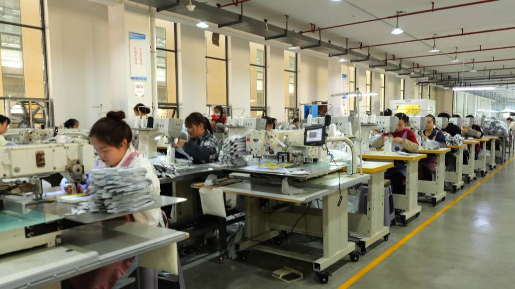 走进位于宽敞整洁的生产车间内,自动化设备高效运转,针车、裁切、成型等各道工序衔接有序,工人们专注操作、赶制订单,处处洋溢着火热的生产氛围。