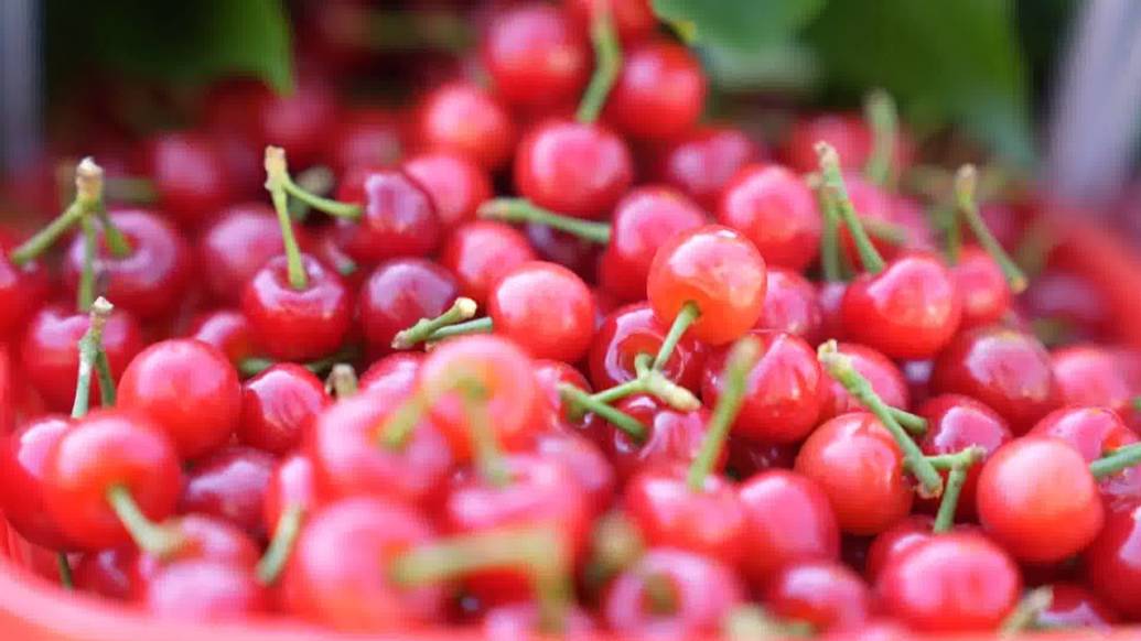 樱桃林里,杨顺莲带着工人们忙着采摘熟透的樱桃,趁着早市,能卖个好价钱。