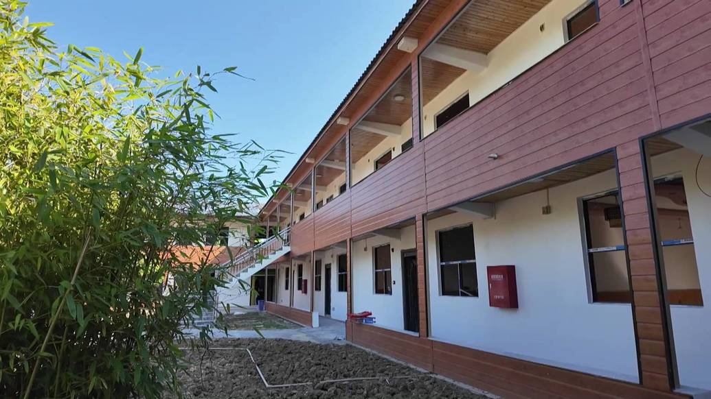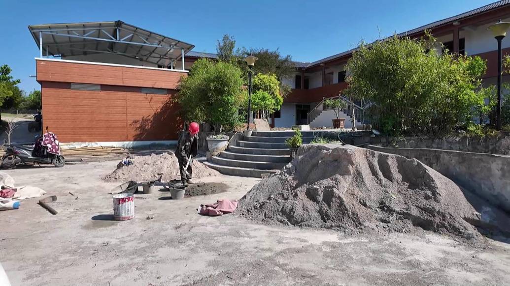 走进位于宋旗镇湖兴村的碧潭小筑综合体项目点,项目整体建设已全部完工,施工人员正在进行最后的收尾作业。在项目各个功能区域,工人们分工协作,玻璃安装、焊接桌椅等作业有条不紊,一派忙碌而有序的施工景象。