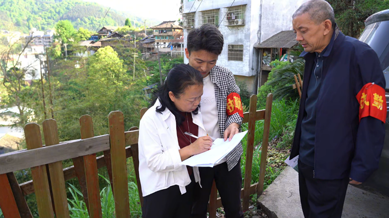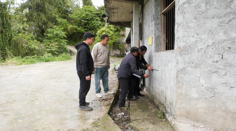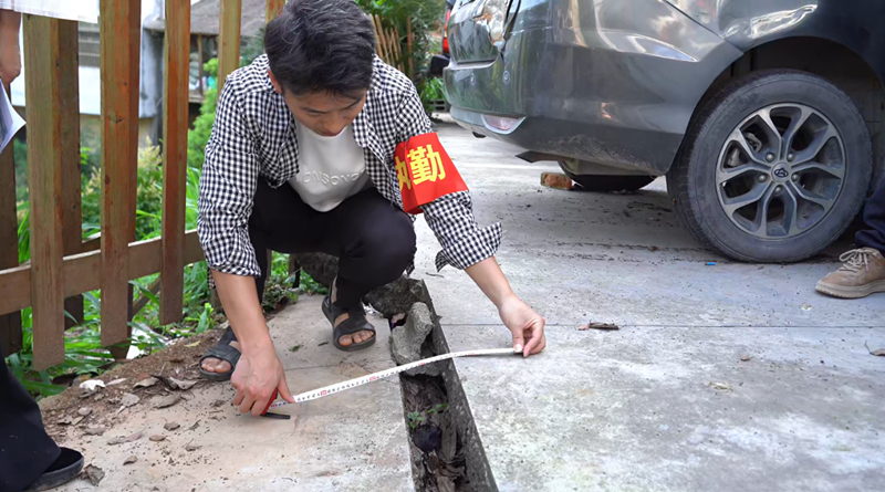 在铜仁德江县共和镇神溪村,镇村两级每天派出分管人员到地质灾害隐患点,测量地面和墙体裂缝变化,查看自动化监测设备运行情况。