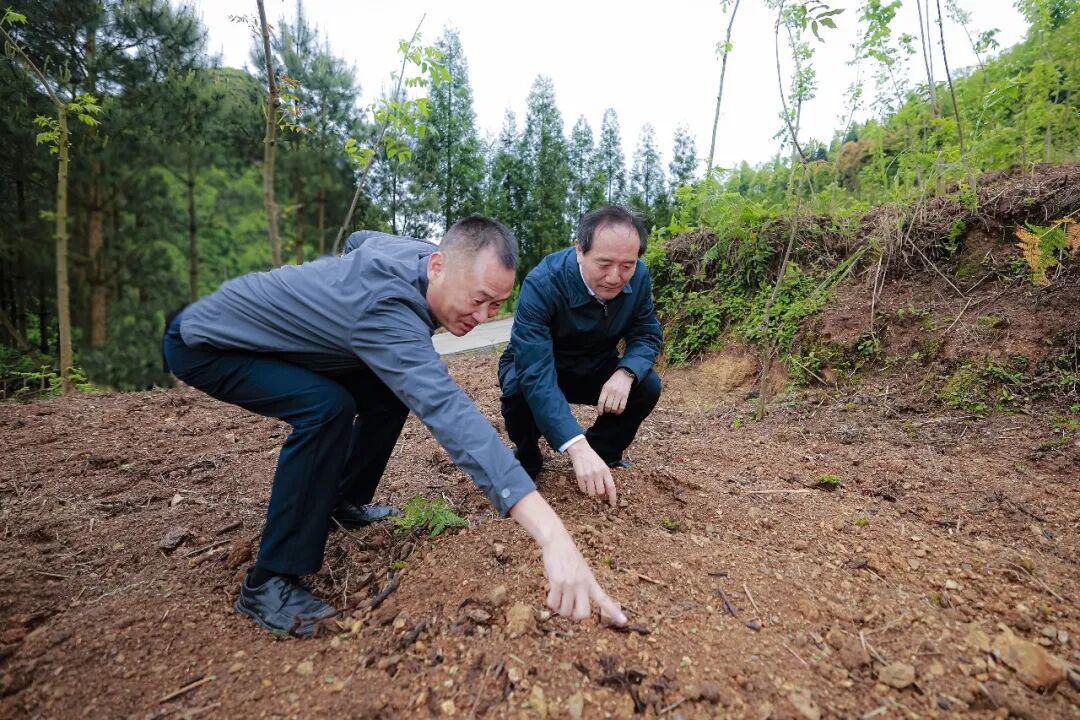 杨昌鹏到七眼桥镇特色农业产业育苗孵化园、优质黄羽肉鸡养殖基地,旧州镇老落坡国有林场林下特色种养基地等项目点,详细了解项目建设、产业发展、联农带农等情况。