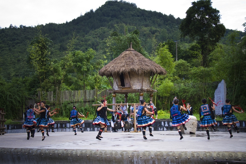 菱角村因水田中遍生菱角而得名,夏日翠叶随波摇曳,构成独特的田园风景。这里还是“喜鹊苗”的聚居地,蜡染、刺绣、芦笙舞代代相传,民俗文化底蕴深厚。游客可以学习苗族蜡染、刺绣技艺,亲手制作非遗饰品;参与春节“赶花场”、端午“跳花坡”等民俗活动,观赏芦笙舞与口弦演奏;品尝苗家八块鸡、水花酒,体验苗家长桌宴,沉浸式感受“喜鹊苗”文化的独特魅力。