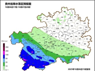 暴雨蓝色预警!贵州部分地区有大到暴雨2025年10月07日