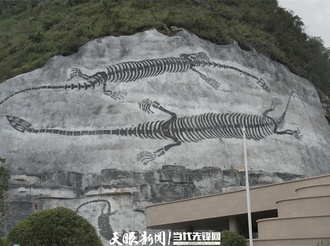 三叠纪古生物“跃”上服务区墙面,花江峡谷大桥云渡服务区成科普长廊2025年09月28日