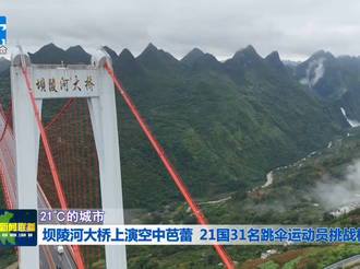 【21℃的城市】坝陵河大桥上演空中芭蕾 21国31名跳伞运动员挑战极限2025年09月26日 -