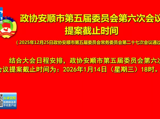政协安顺市第五届委员会第六次会议提案截止时间2026年01月09日 -
