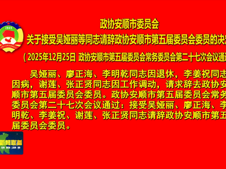 政协安顺市委员会关于接受吴娅丽等同志请辞政协安顺市第五届委员会委员的决定2025年12月27日