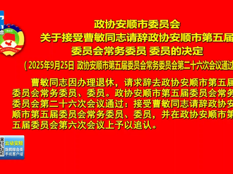政协安顺市委员会关于接受曹敏同志请辞政协安顺市第五届 委员会常务委员 委员的决定2025年09月26日 -