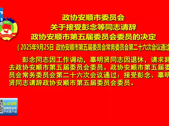 政协安顺市委员会关于接受彭念等同志请辞政协安顺市第五届委员会委员的决定2025年09月26日 -