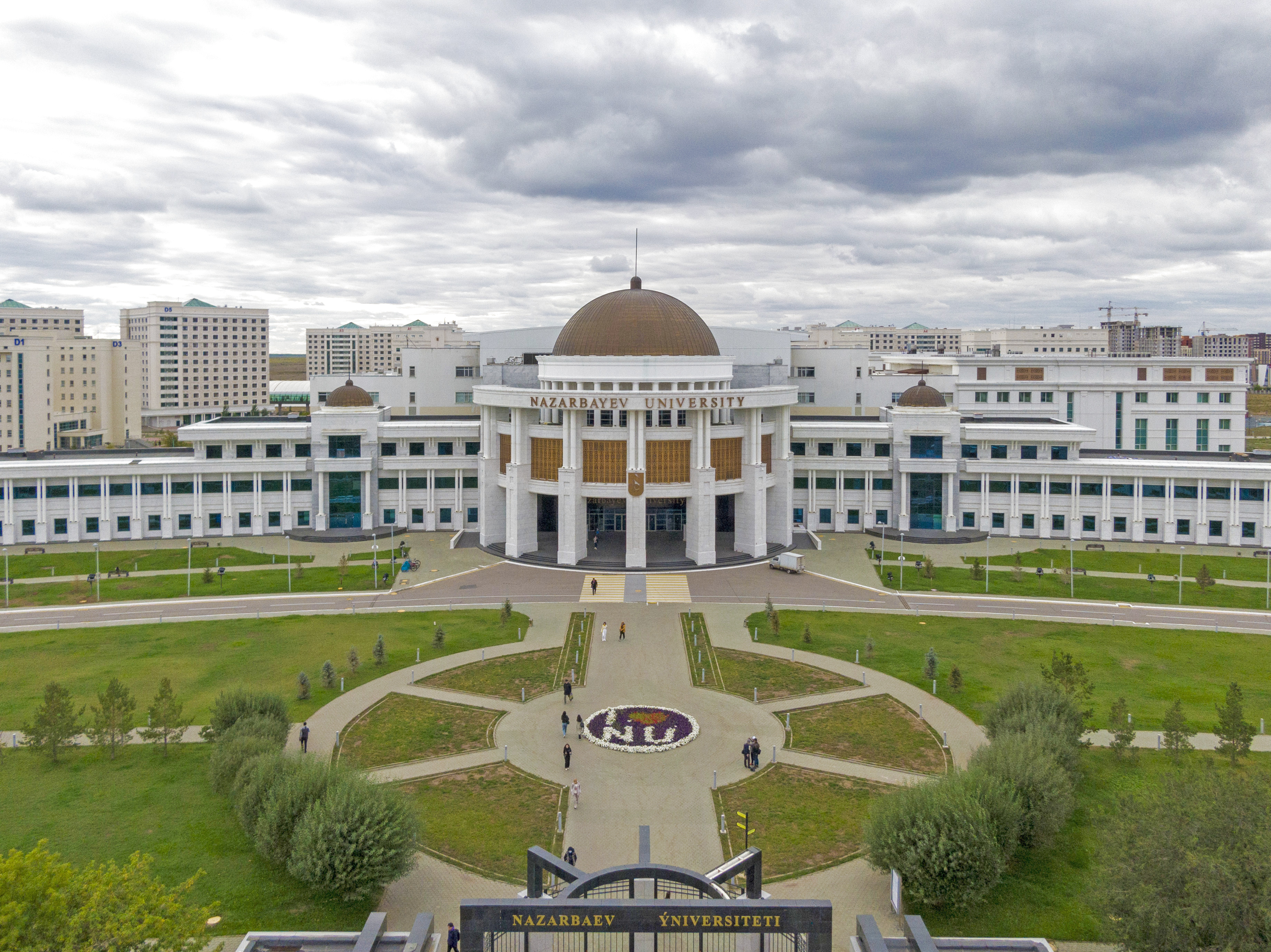 这是2023年9月6日在哈萨克斯坦首都阿斯塔纳拍摄的纳扎尔巴耶夫大学校园。