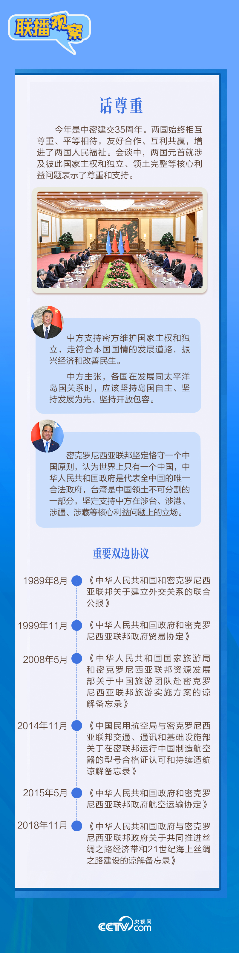 联播+应习近平主席邀请,密克罗尼西亚联邦总统韦斯利·西米纳于4月5日至12日对中国进行国事访问。4月9日下午,习近平主席在北京人民大会堂同西米纳总统举行会谈,就双边关系发展及共同关心的问题深入交换意见。双方会谈哪些细节值得关注?央视网《联播观察》带您了解。