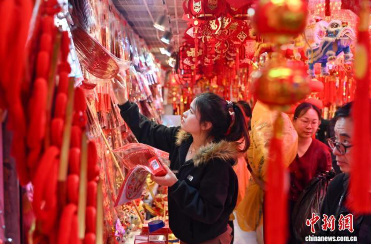 资料图:市民在广州一德路选购新春饰品。记者 陈骥旻 摄