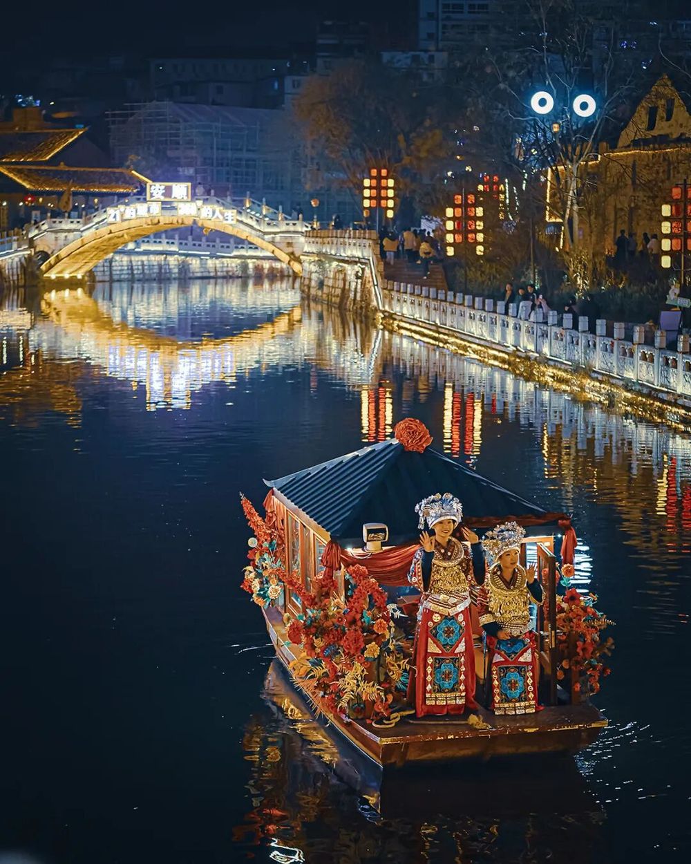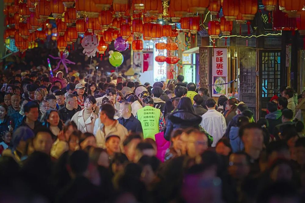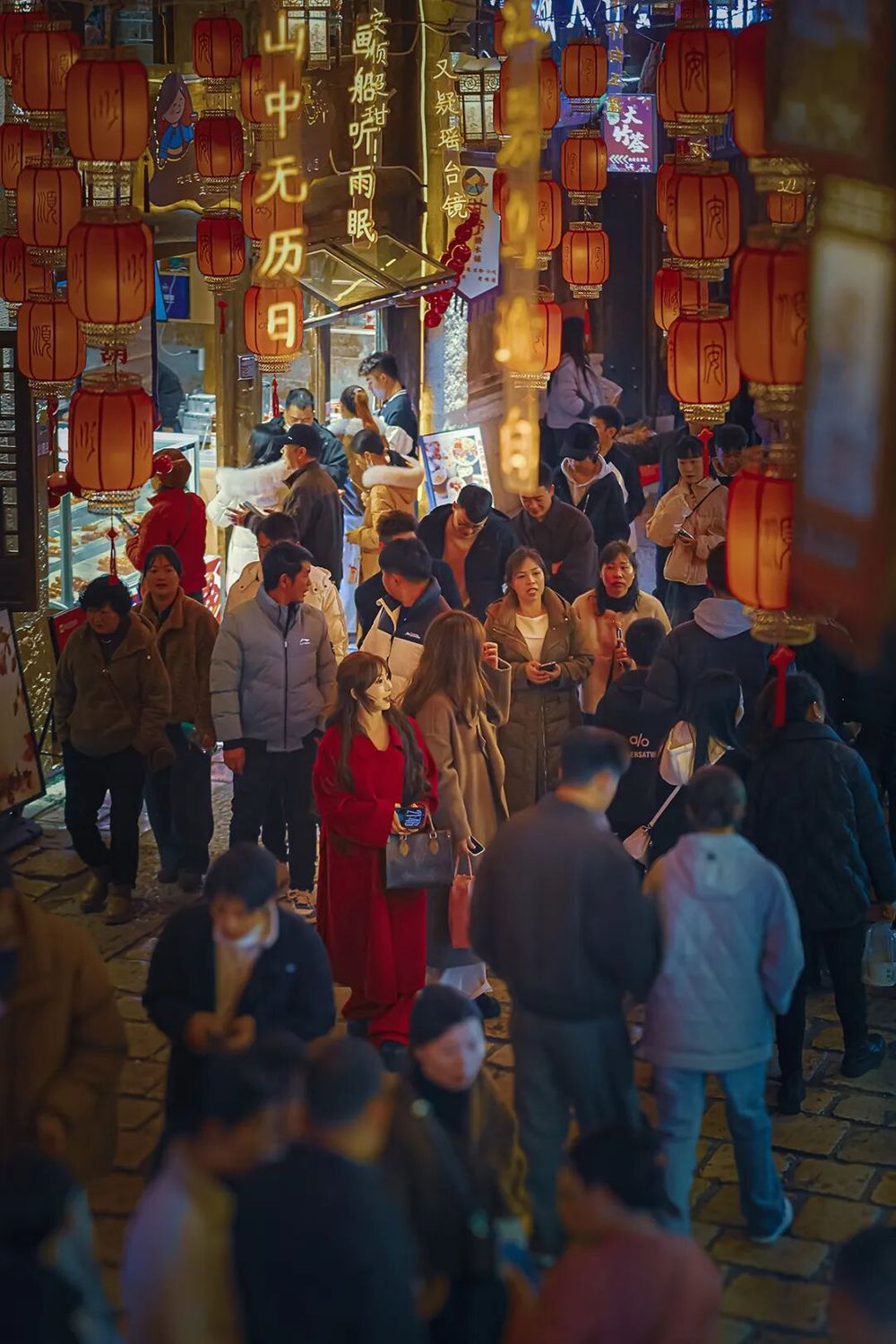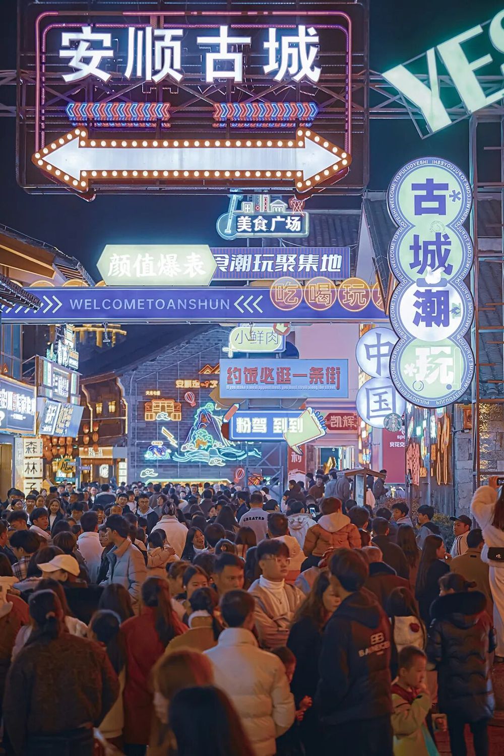 马年春节长假,贵州安顺古城历史文化街区成了来安游客们争相打卡的热门景点,白天人流如织,热闹非凡;而夜色中的安顺古城则是一片色彩斑斓,仿佛一个如梦如幻、流光溢彩的世界。加之近期安顺市推出的一系列精心策划的春节文旅活动,更是吸引了众多市民和游客前往感受新年味儿。(来源:安顺市融媒体中心)