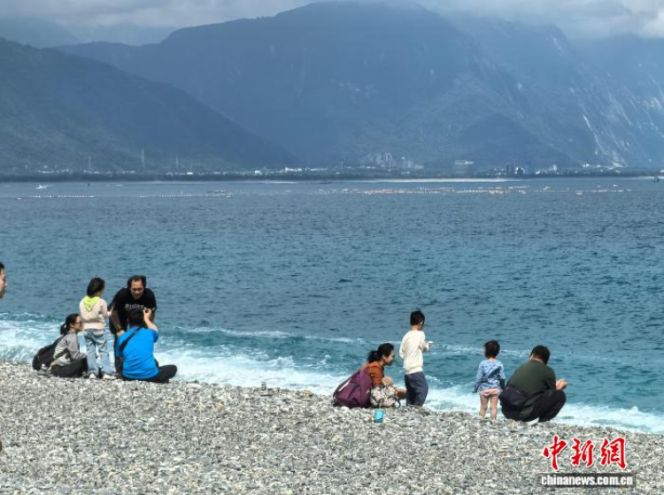 2月21日,游客在台湾花莲七星潭海岸风景区游玩。中新社记者 刘大炜 摄