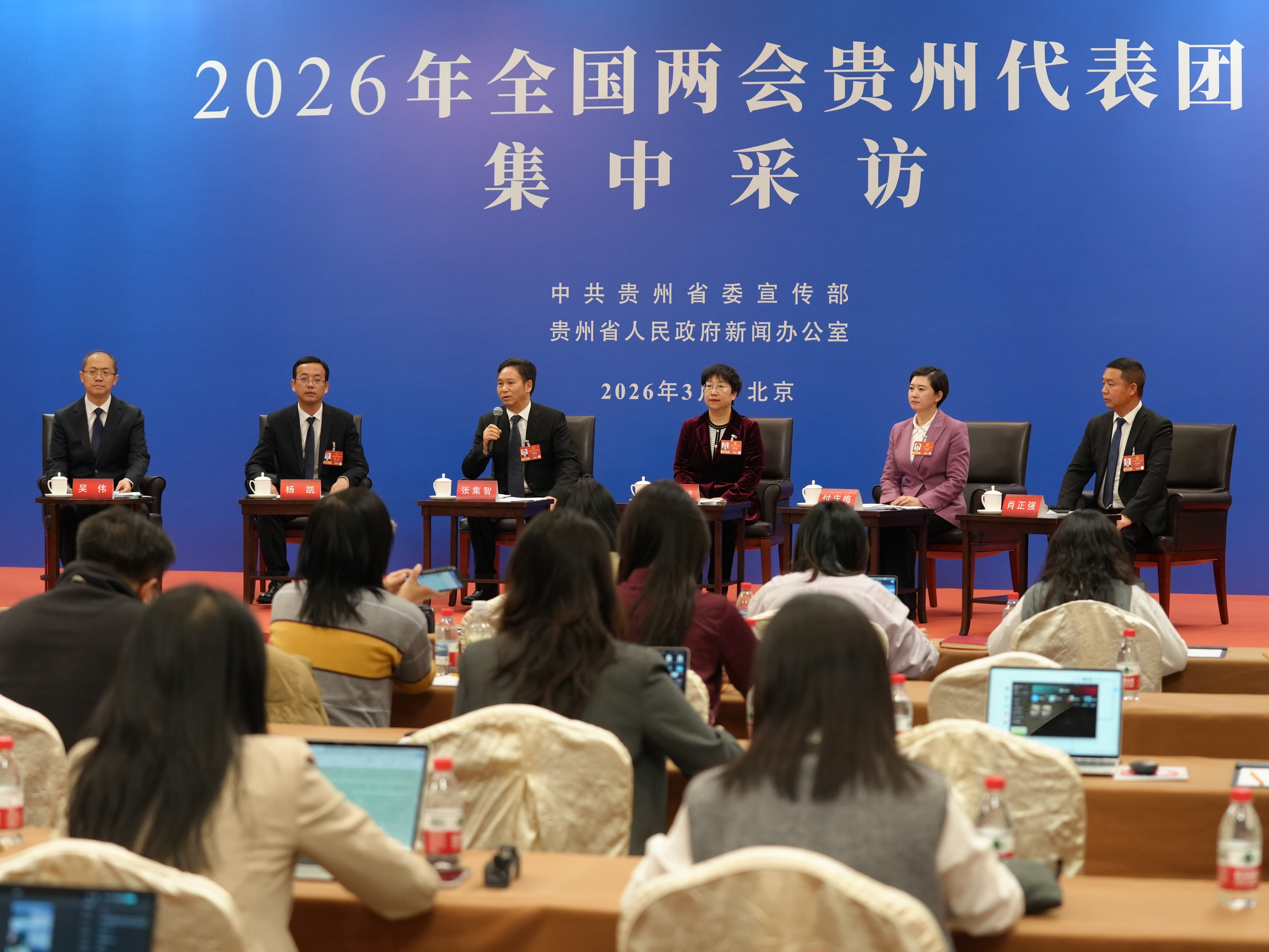三月的北京,春意渐浓。3月8日晚,2026年全国两会贵州代表团第二场集中采访现场气氛热烈。面对记者,5位来自基层和厅局的全国人大代表,围绕“推动兴业、强县、富民一体发展”,晒出了各地的“成绩单”和“致富经”。从全省的产业布局到一个县的特色突围,再到一个村的四季变迁,一幅产业兴、百姓富的贵州画卷在问答间徐徐展开。