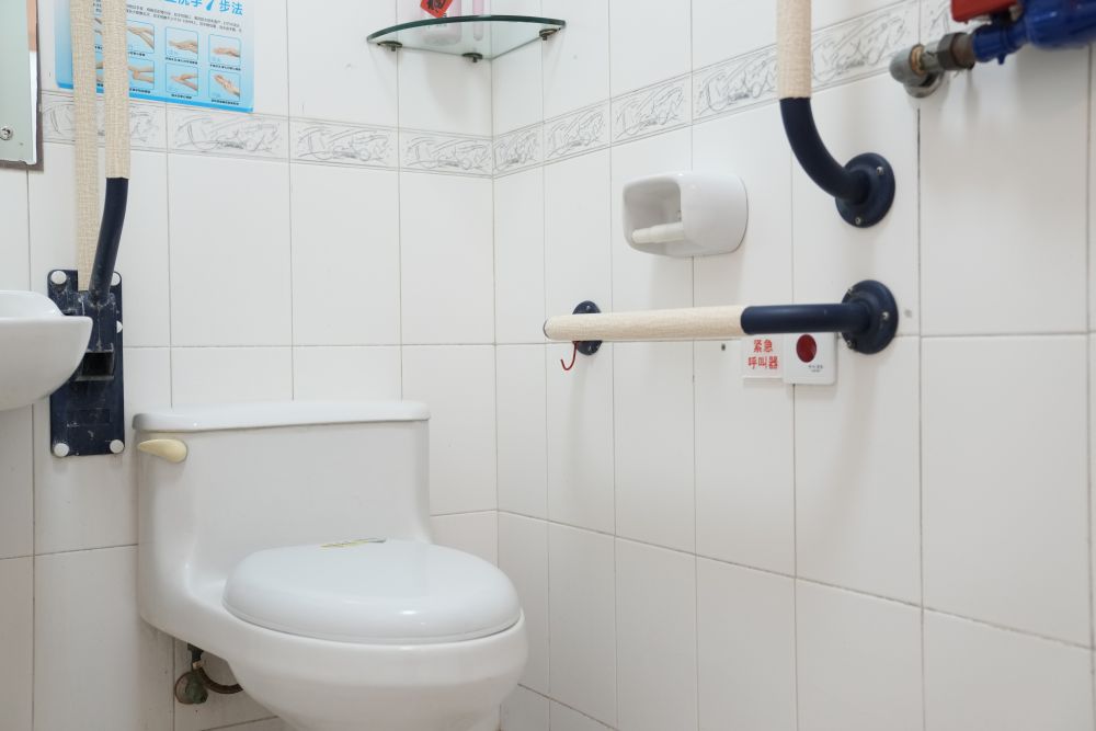 2月10日拍摄的银龄老年公寓适老化改造后洗手间。